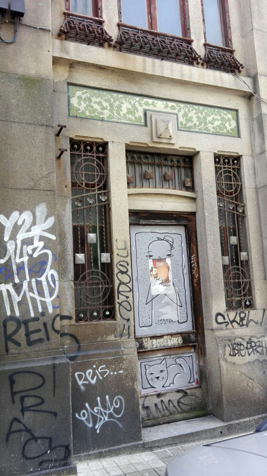 Categorias: arte urbana, azulejo, caligrafia, caótico, coexistência, contraditório, contrastante, contraste, decadente, disciplinas, enquadramento, exterior, fachadas, ferro (metal), forma, geométrico, gramática, intencionalidade, linha, matéria, papel, pedra, plano alargado, qualificantes, sobreposição, vidro