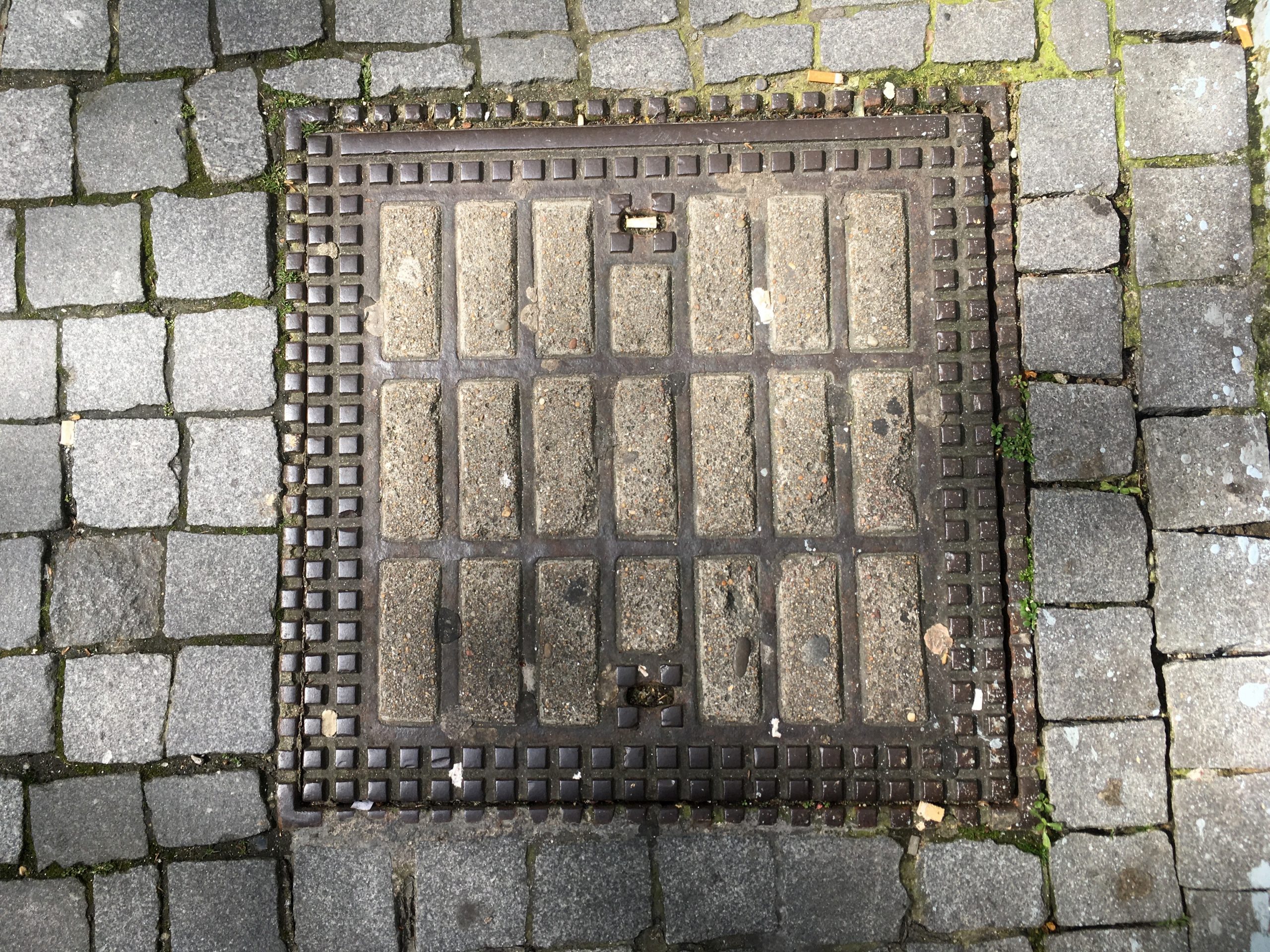 Categorias: chão, enquadramento, ferro (metal), forma, geométrico, gramática, intencionalidade, matéria, padrão, pedra, plano de pormenor, ponto, qualificantes, rígido, ritmo, simetria, tampas, textura